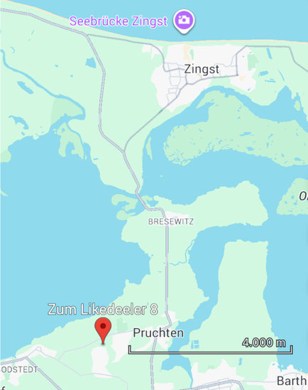Von Barth aus fährt man über die B105 Richtung Löbnitz → dann die L21 Richtung Zingst.